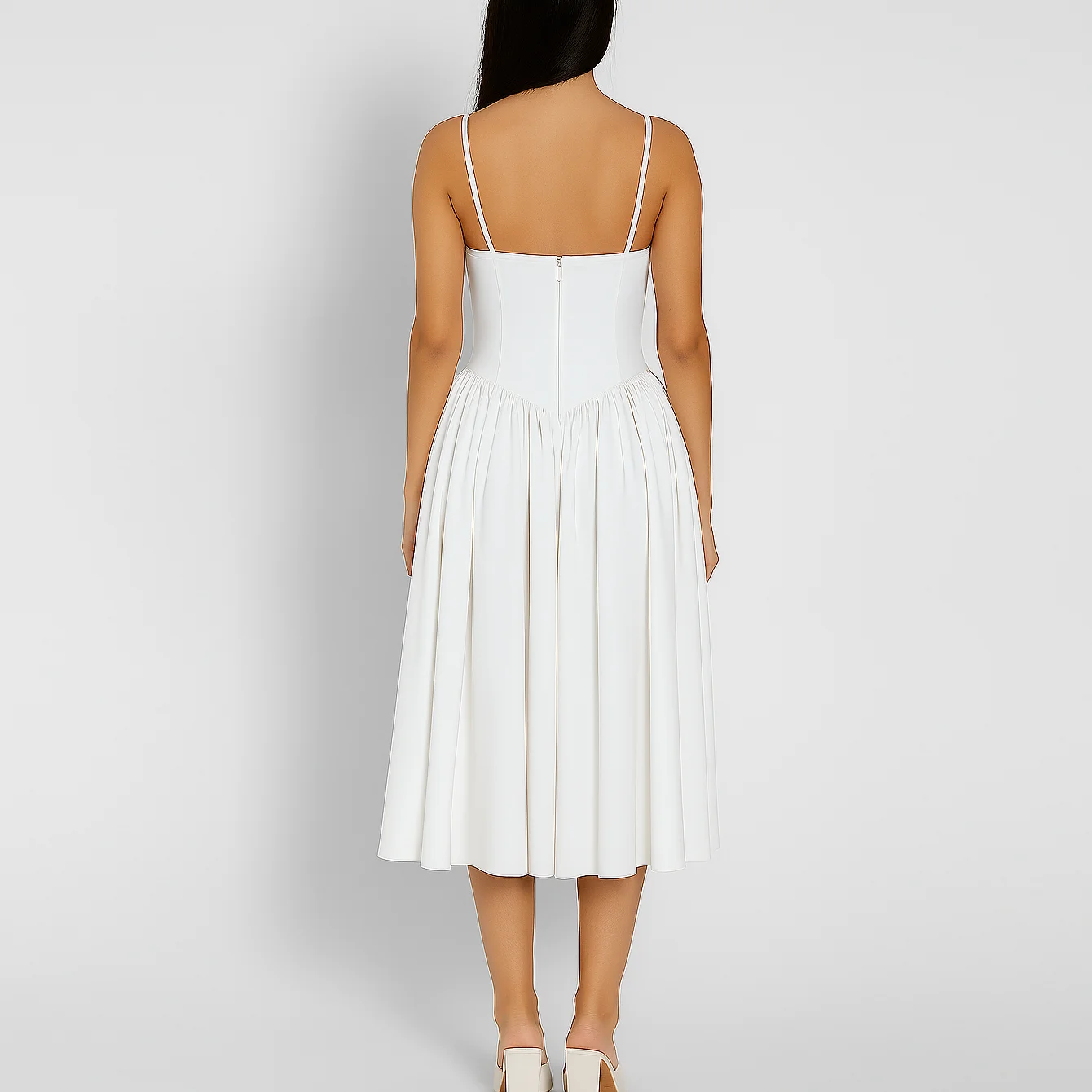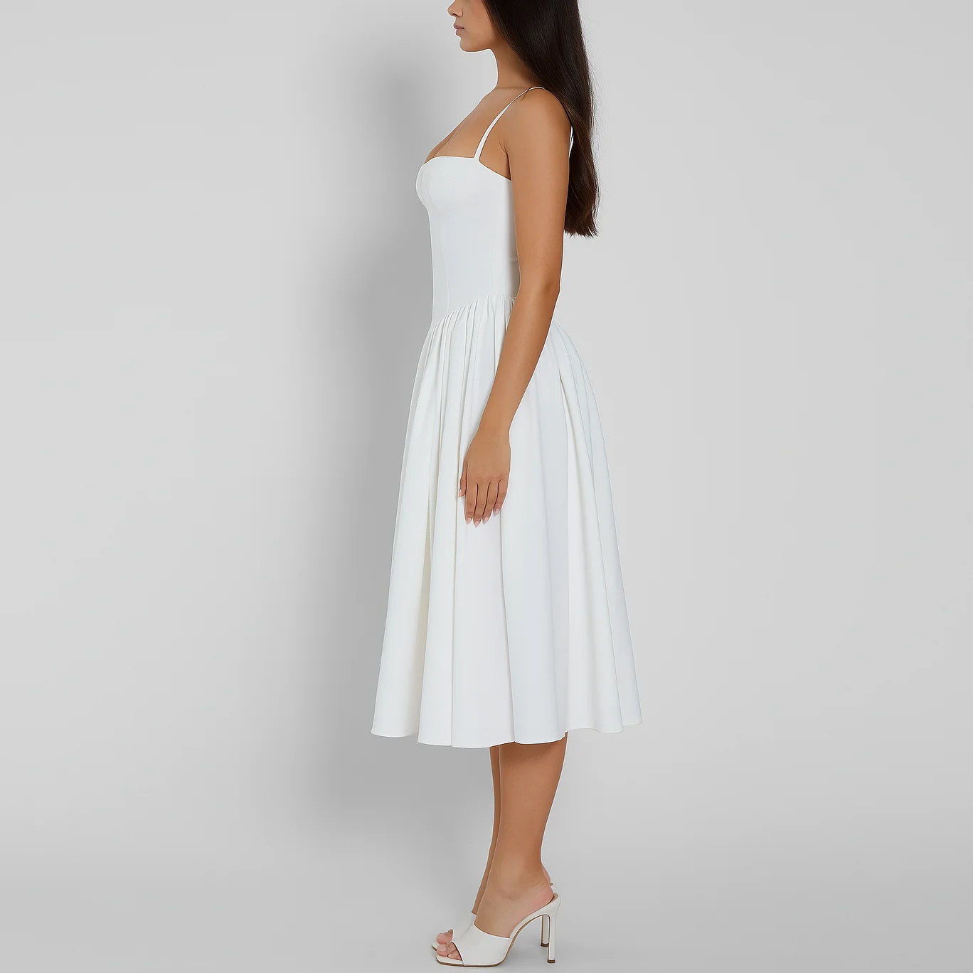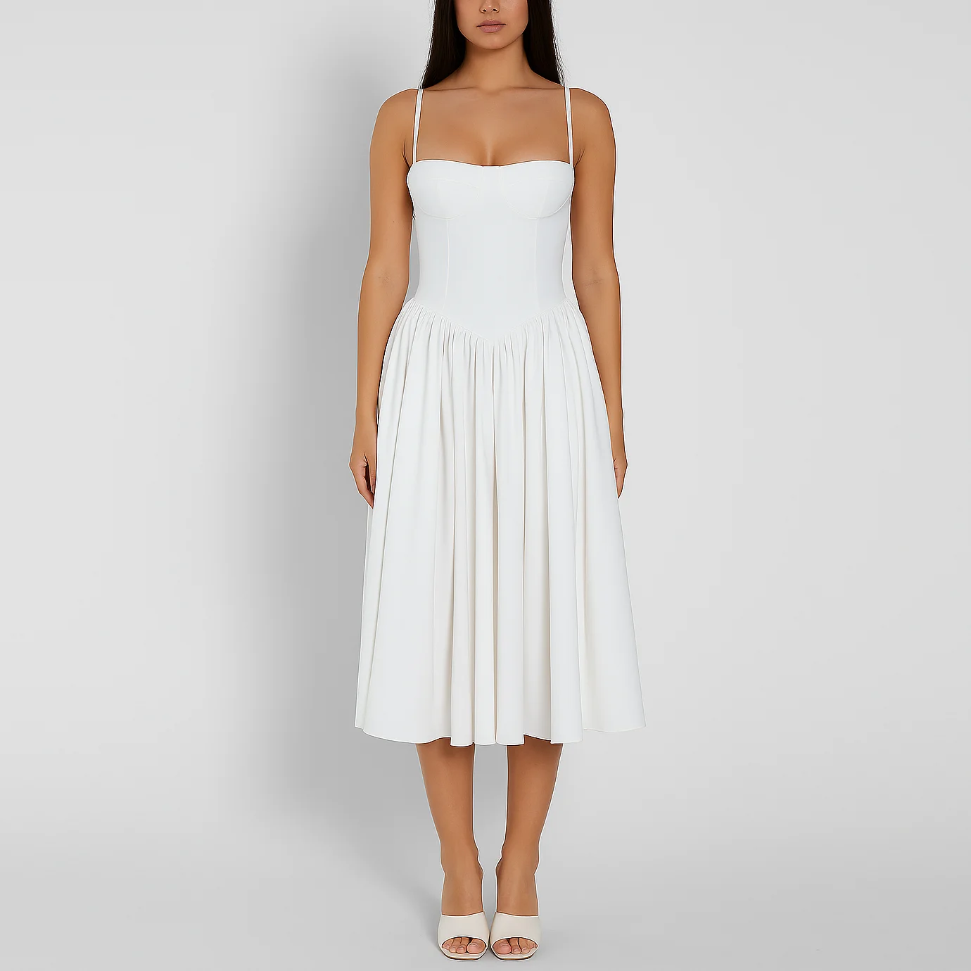 Custom Ladies Sexy Elegant White Slip Corset a Line Long Pleated Dress Women